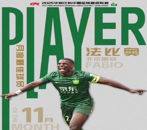 法比奥当选中超11月最佳球员