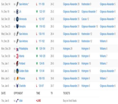 北京时间1月8日,NBA常规赛,雷霆129-125拒绝爵士逆转避免三连败。这场比赛雷霆最多时领先爵士20分之多,可在第二节的后半段开始雷霆的专注度就下滑,西区倒数第三的爵士是疯狂的反扑,雷霆全队都有一种沮丧的情绪,进入末节爵士已经抹平20分的差距并反超进入决胜时刻,好在SGA命中绝平中投,加时赛SGA连拿9分拯救雷霆。