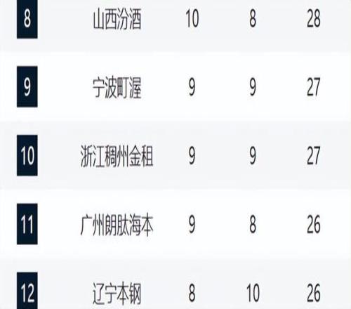 山西则排在第十,不过张宁和焦海龙都受伤了,后续的比赛并不保险。